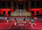 Na speciálně připraveném kurtu je doplnila bývalá mistryně světa Wang Lin, která je v Číně považována za jednu z největších sportovních superstar, i když už musela kvůli zranění ukončit kariéru.